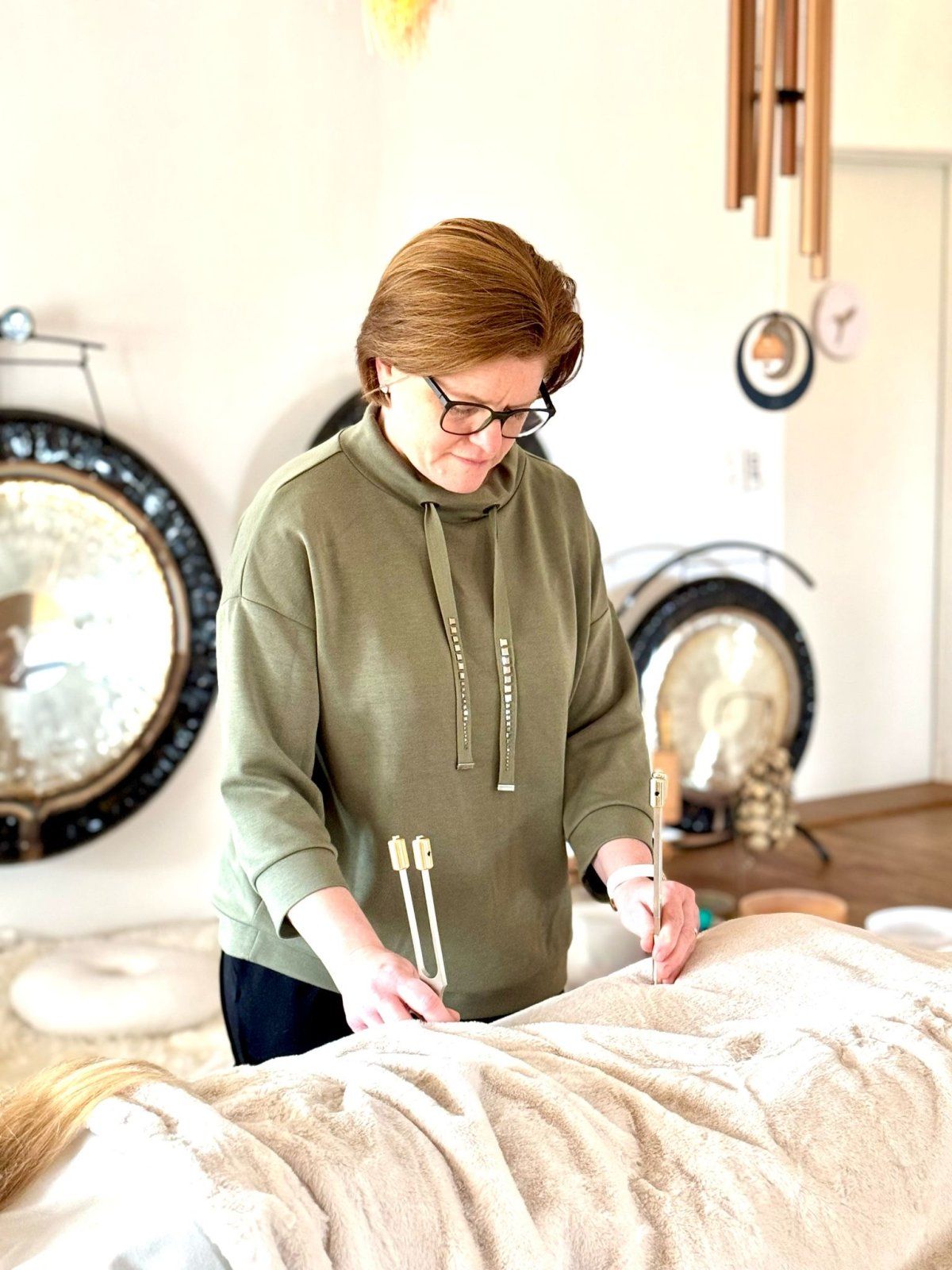 Soin vibratoire aux diapasons : ralentissez, respirez, laissez-vous apaiser.